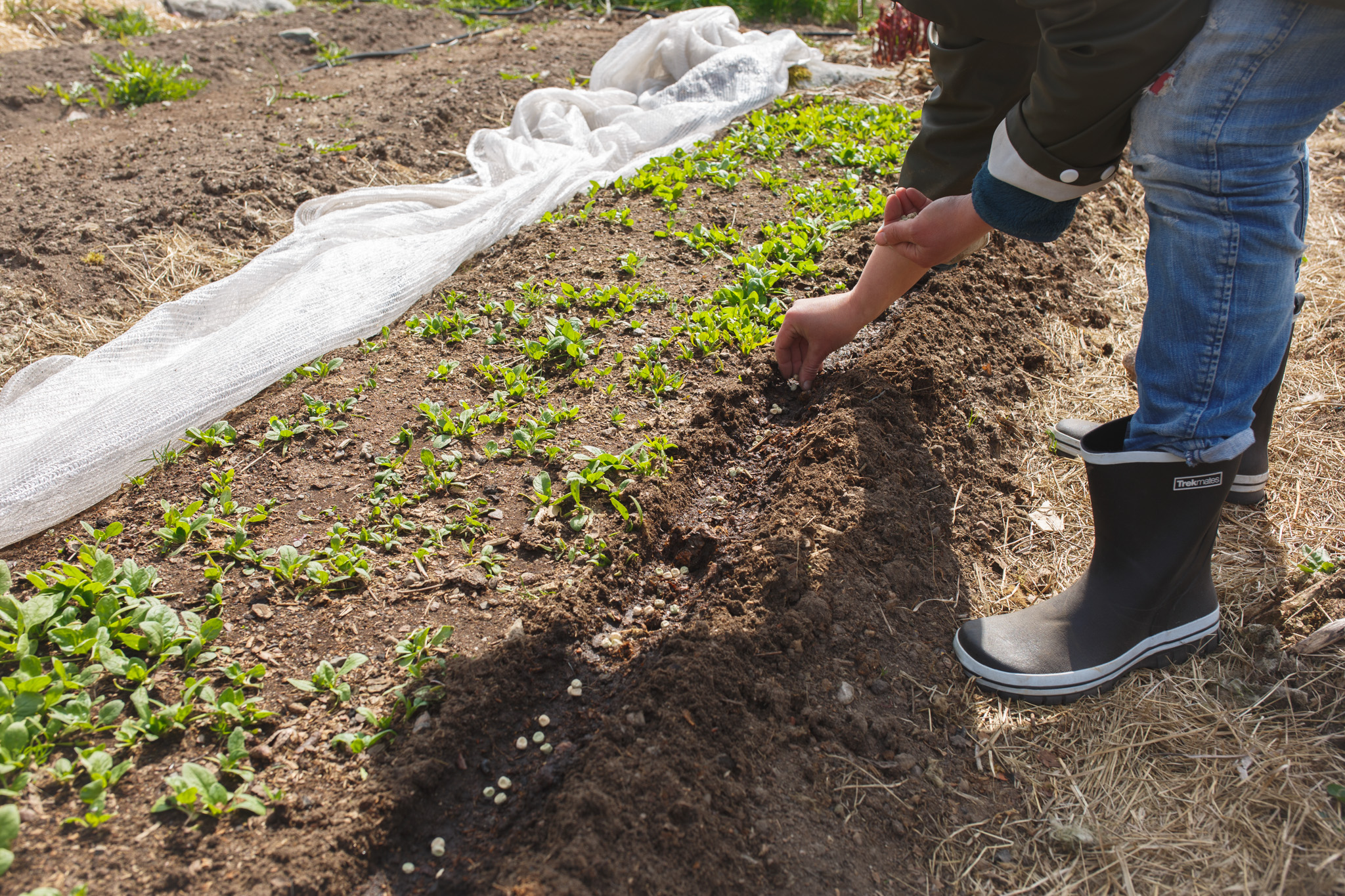 Sara planterar sockerärtor