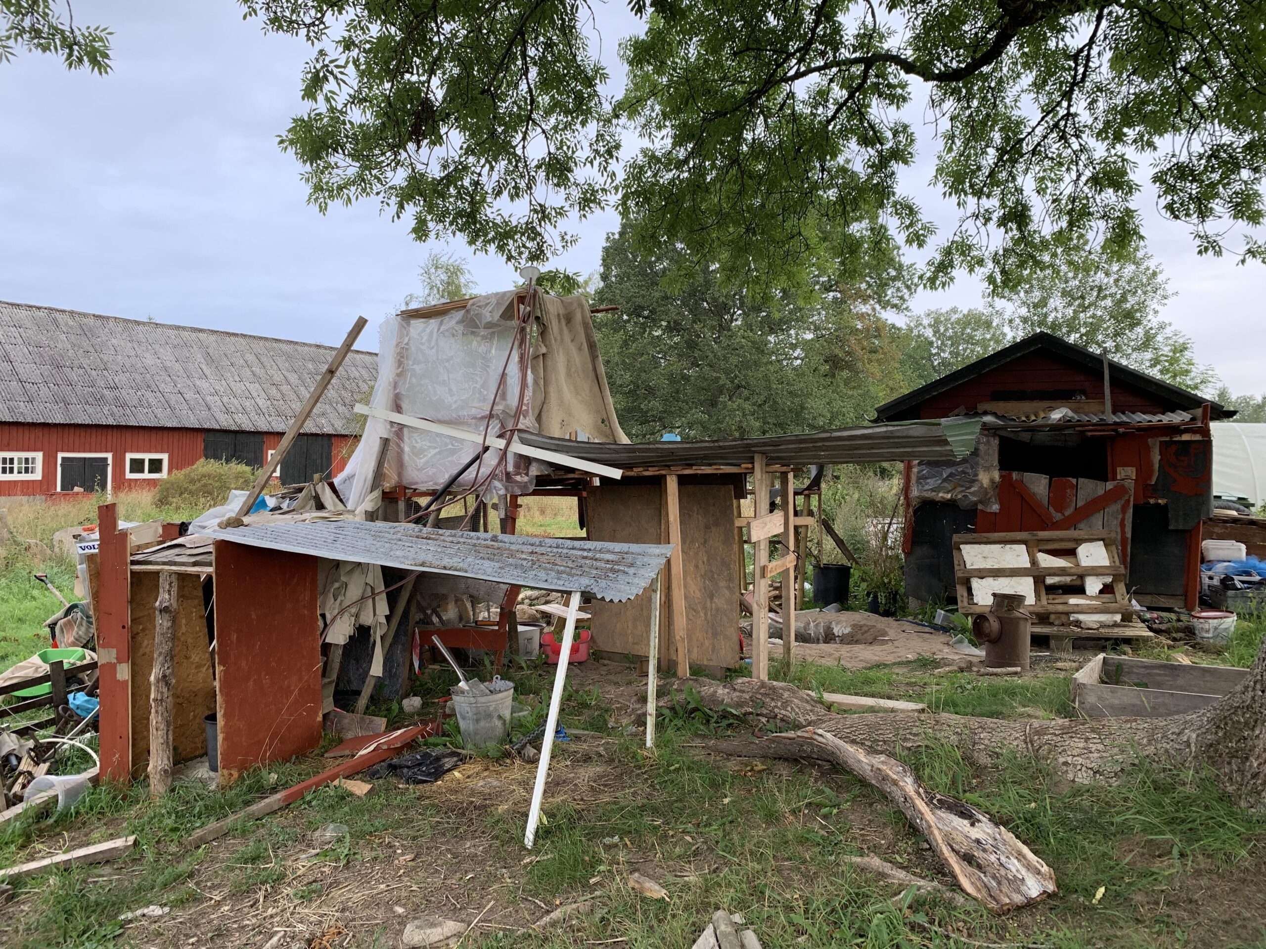 På baksidan har barnen gått bananas och byggt hela sommaren. De är oerhört kreativa och det har gått åt många lådor spik. Ingen har skadat sig dock...
