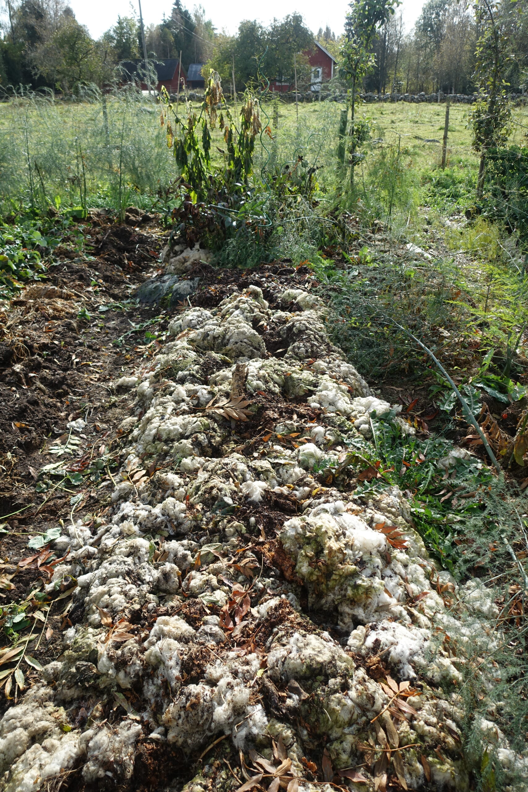 18. October 2019sara bäckmo, skillnadens trädgård, sara backmo, sara's kitchen garden, grönsaker, vegetables, fårull, sheepswool, täckmaterial, täckodla, täckodling