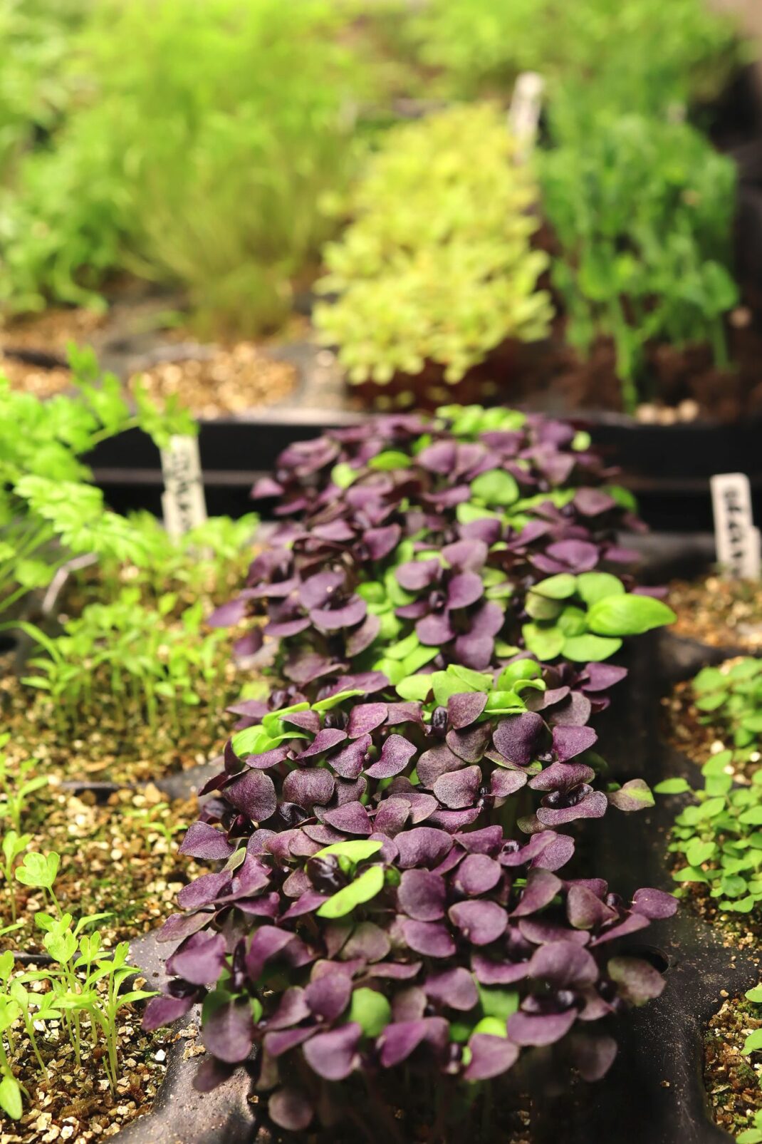 These purple leaves are actually basil! Lovely to grow as a microgreen.