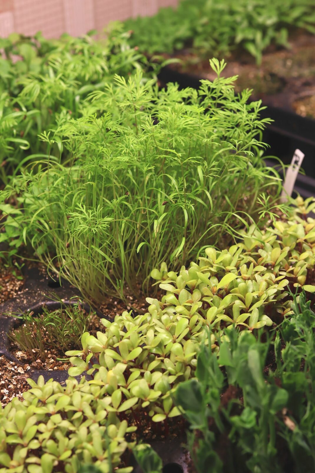 I often grow herbs indoors under a grow light. Here we see dill, coriander and chervil