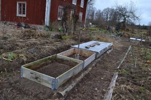 Köksträdgård, vinter, Skillnadens Trädgård, pallkragar