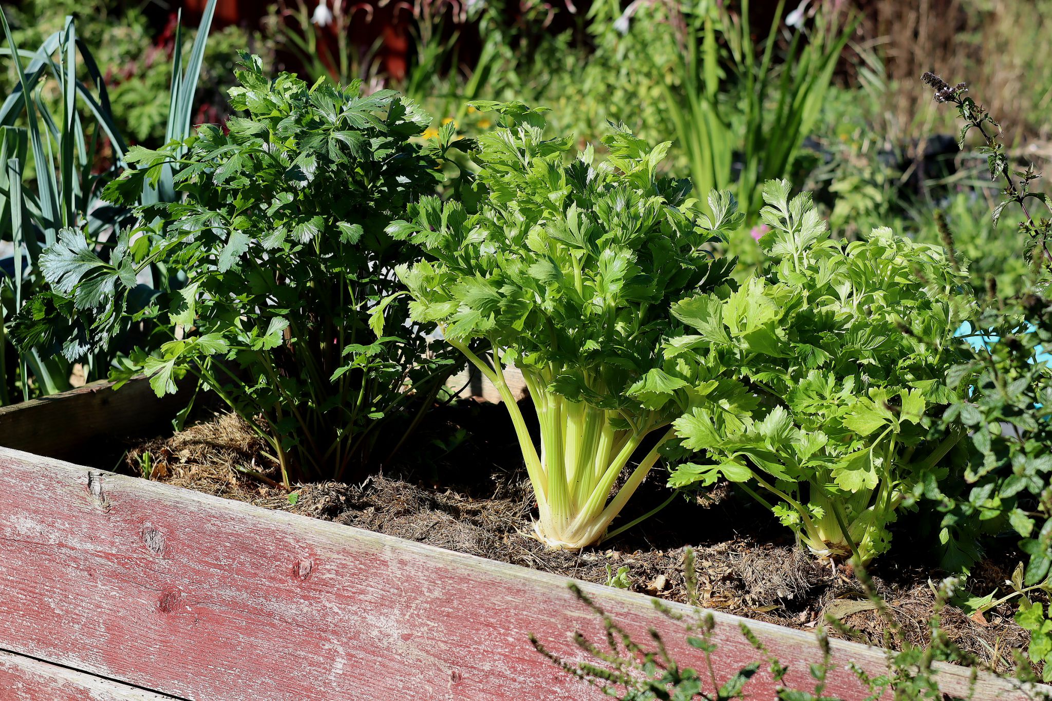 Stjälkselleri växer fint i pallkrage, men slarva inte med gödsling och vattning.