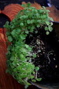 Atsina-krasse heter atsina cress på engelska. Växtens namn är egentligen anisisop på svenska. Det engelska namnet är agastache.
