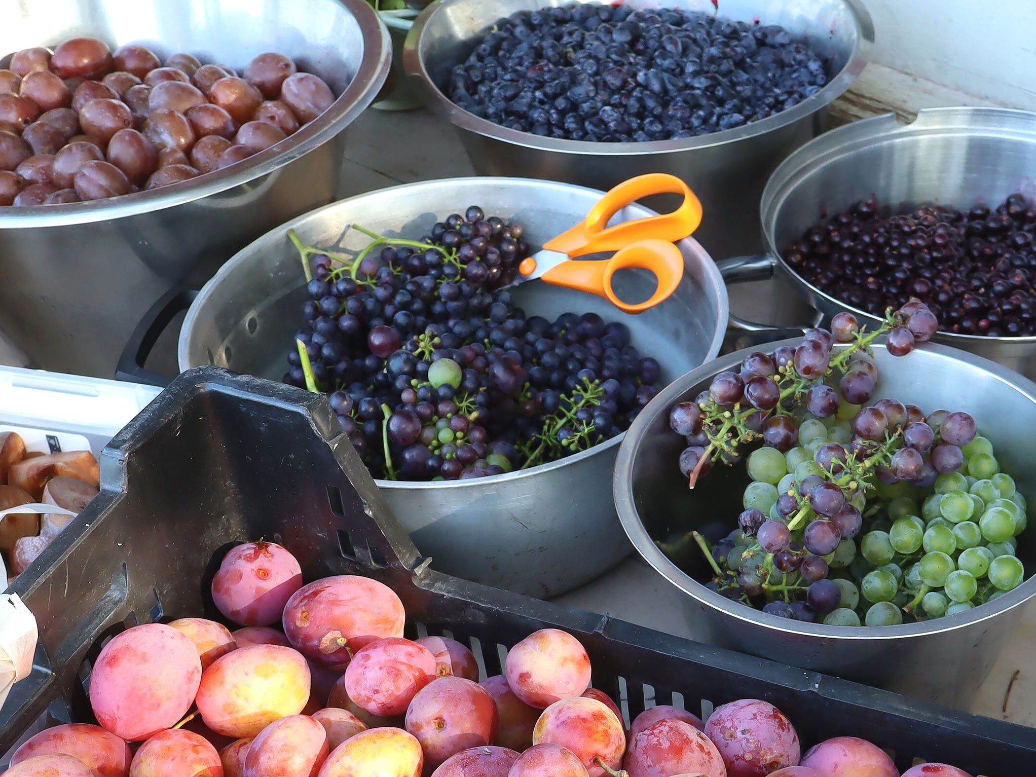 Som komplement till de frysta bären plockade jag förra sommaren druvor. Plommonen frös jag in till senare mustning, de blir inte bra att pressa färska utan att ha krossats. Och min kross-maskin gillar inte kärnorna.