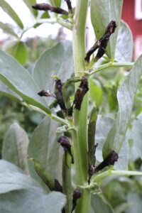 Så här ser det ut när blombladen vissnar och bönorna innanför börjar att växa.