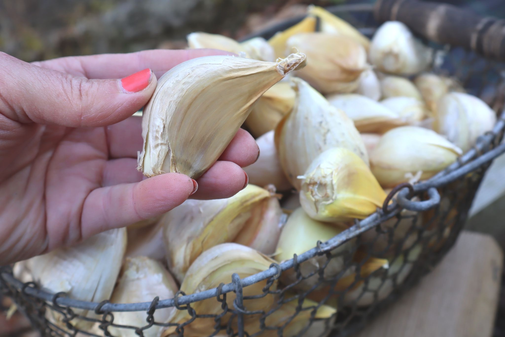 Klyftor till elefantvitlök blir jättestora. En kul växt att odla, som ger god och användbar lök.