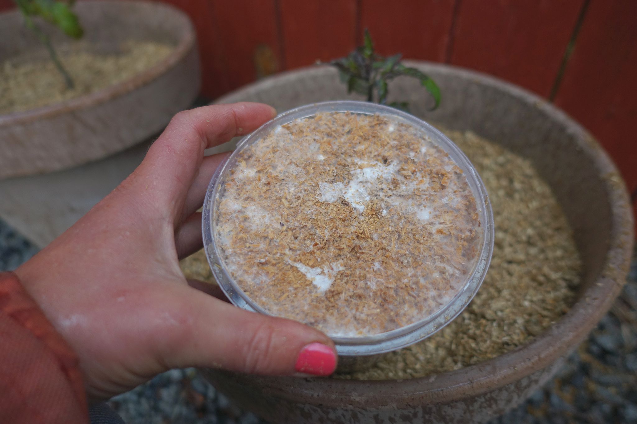 03. August 2025sara bäckmo, skillnadens trädgård, svampodling, kruka, odla svamp, ostronskivling, svamp, mycel,