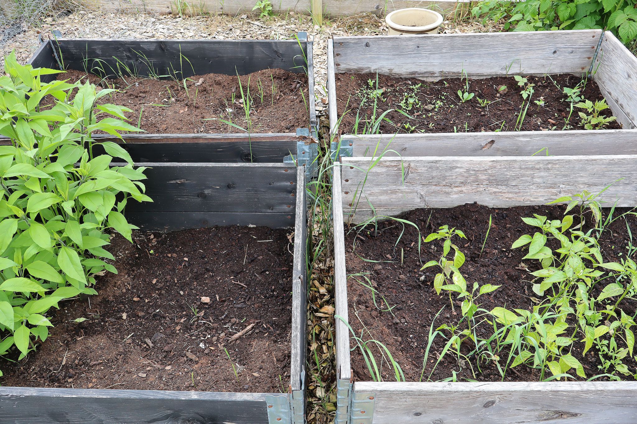 Fyra pallkragar producerar massor av goda grönsaker. Sådd i juni ger skörd i augusti och framåt.