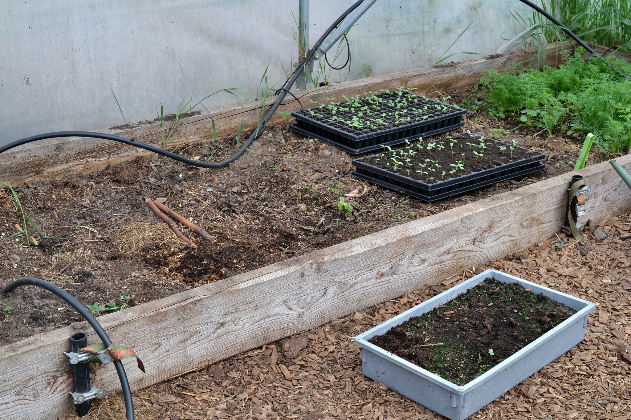 Bädd med jord i tunnelväxthuset.