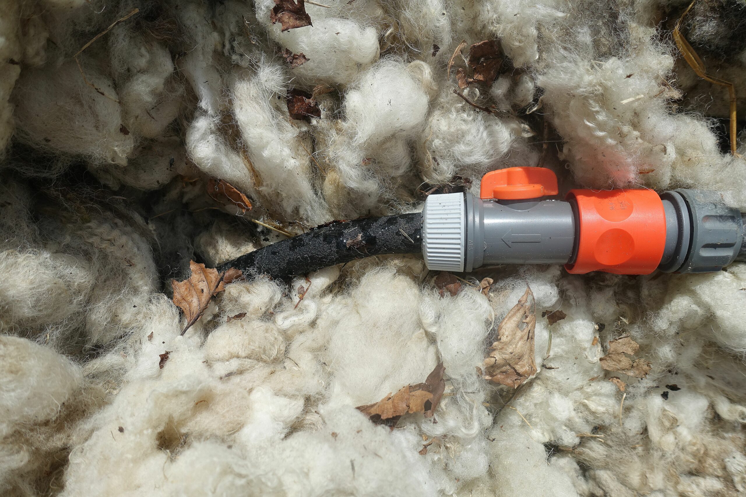 I ullen tittar en koppling fram. Just den här kopplingen kan styra hur högt tryck som vattnet har när det når fuktslangen.