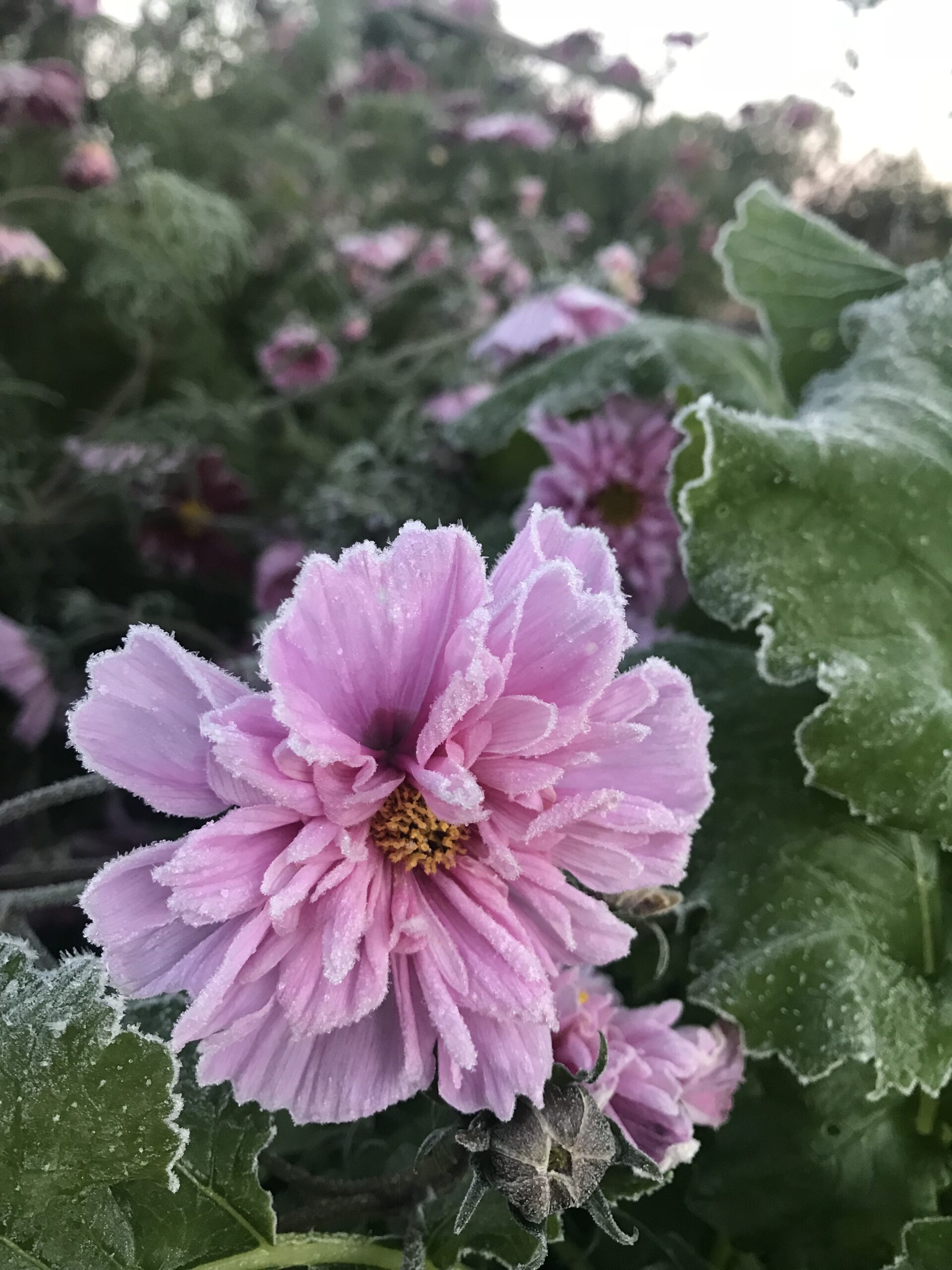 frost, kitchengarden, vegetablegarden, köksträdgård, skillnadens trädgård, sara bäckmo, sara backmo, sara's kitchen garden, cosmos, rosenskära