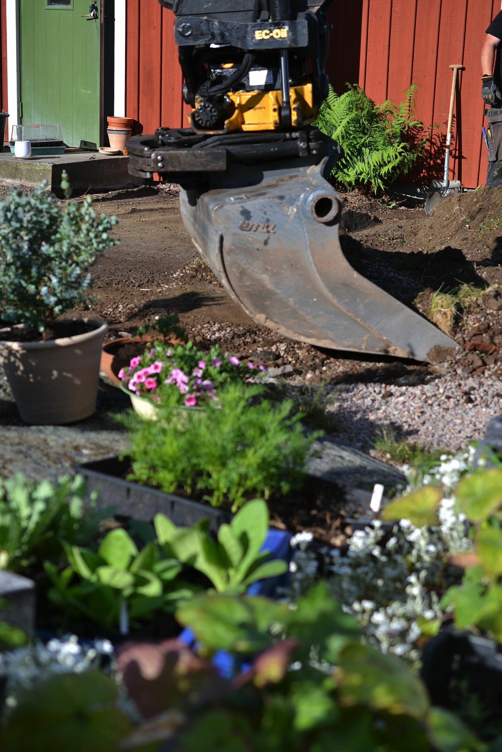 grus, sara bäckmo, uteplats, berghem, skillnadens trädgård, sara backmo, sara's kitchen garden, grävskopa,