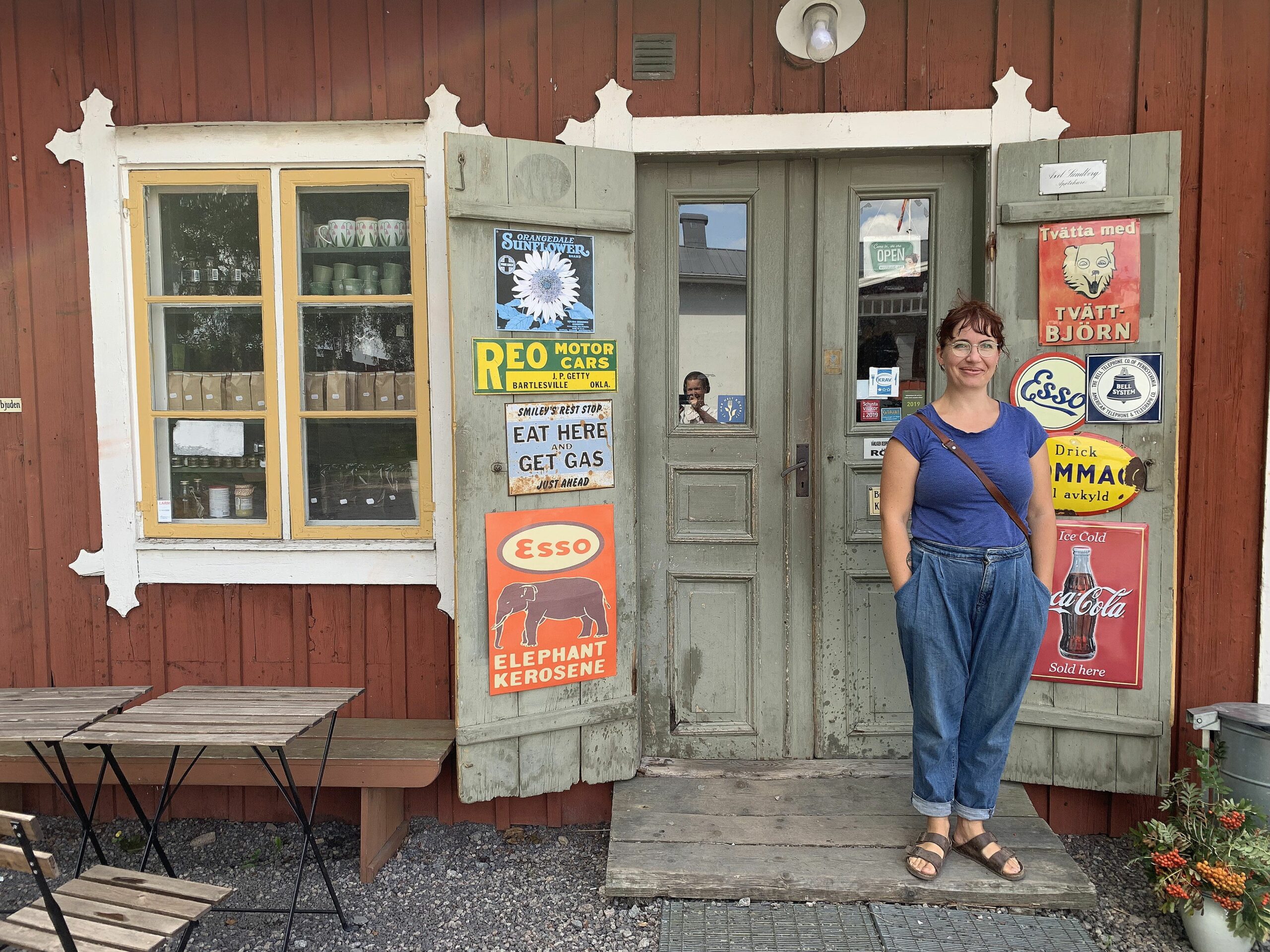 Friederike Hector - stickgalen trädgårdsnörd i byn - och jag gör en trädgårdsresa varje år. Här har vi stannat på lantcafé i Öhr för att luncha.