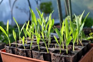 18. May 2017Ett helt tråg rymmer 40 plantor majs. Mycket på liten yta.