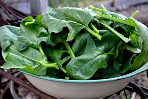21. March 2016En tidig vårskörd av spenat ska förvällas och läggas i frysen.